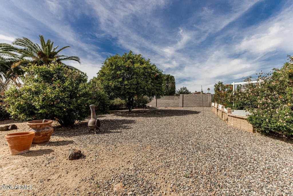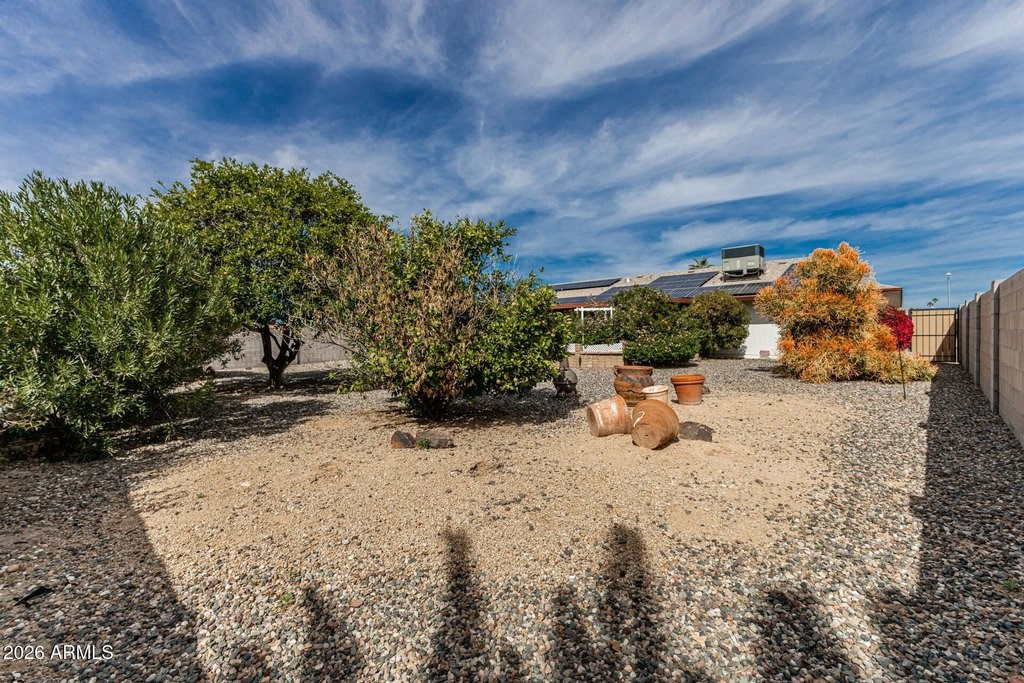 Attractive 2 bedroom, 2 bath home comes with a fenced in backyard. Spacious open kitchen with breakfast bar. Both large bedrooms have walk-in closets, ceiling fans. Laundry room provides ample space for your personal office or hobby room. Pass through gate to the backyard. Relax in the screened in patio that looks out to variety of shrubs and fruit trees. Two car garage has attached cabinets.